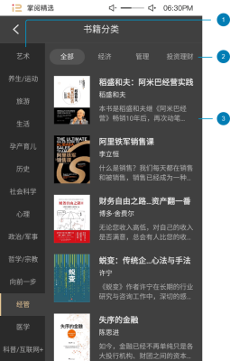 根据不同的内容分类展示所有的书籍,使找书更加便捷。